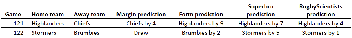 Here are the results for the final round of the competition, followed by our predictions for this weekend’s two big games.