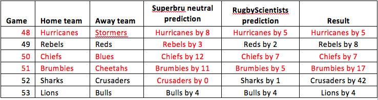 Our predictions were slightly below-par last weekend, getting 4 of weekend’s 7 games correct. Unfortunately two of our outside bets, the Waratahs and Stormers, ended up on the losing side.